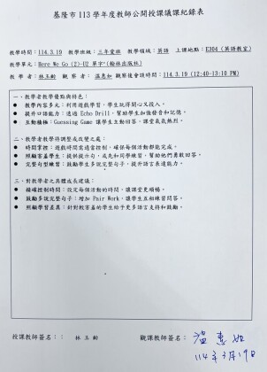 | 備課日期 | 2025-03-12 13:00:00 | 備課地點 | E 301 |
