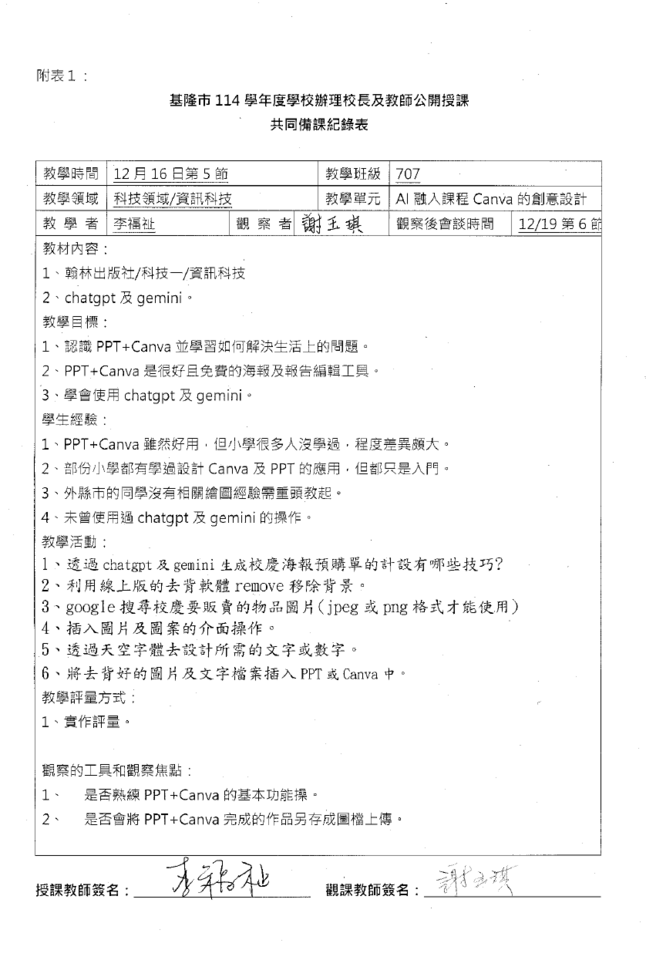 | 備課日期 | 2025-12-16 13:00:00 | 備課地點 | 電腦教室B |