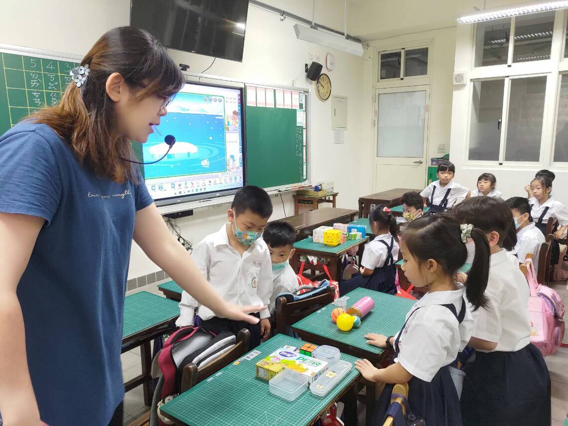1. 請學生將帶來的立體物品放在桌上,進行觸摸、觀察並描述物品的樣子。