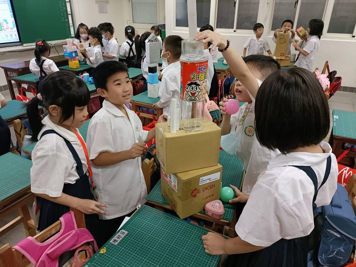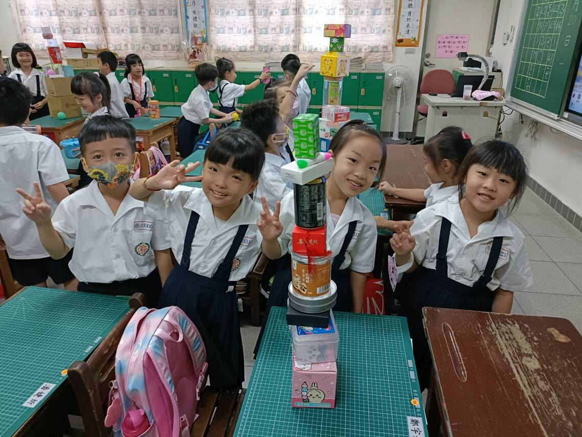 3. 學生分組創作,利用組內的立體物品,合作蓋一座101 大樓。