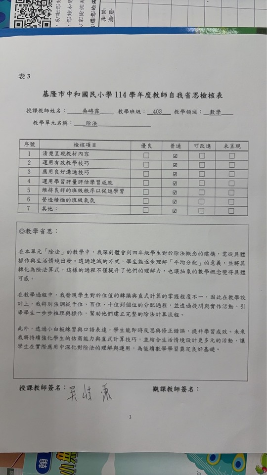 | 授課年級 | 4年級 | 授課班級 | 403 |