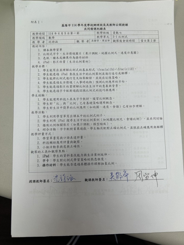 | 備課日期 | 2026-04-07 13:05:00 | 備課地點 | 資源班教室 |